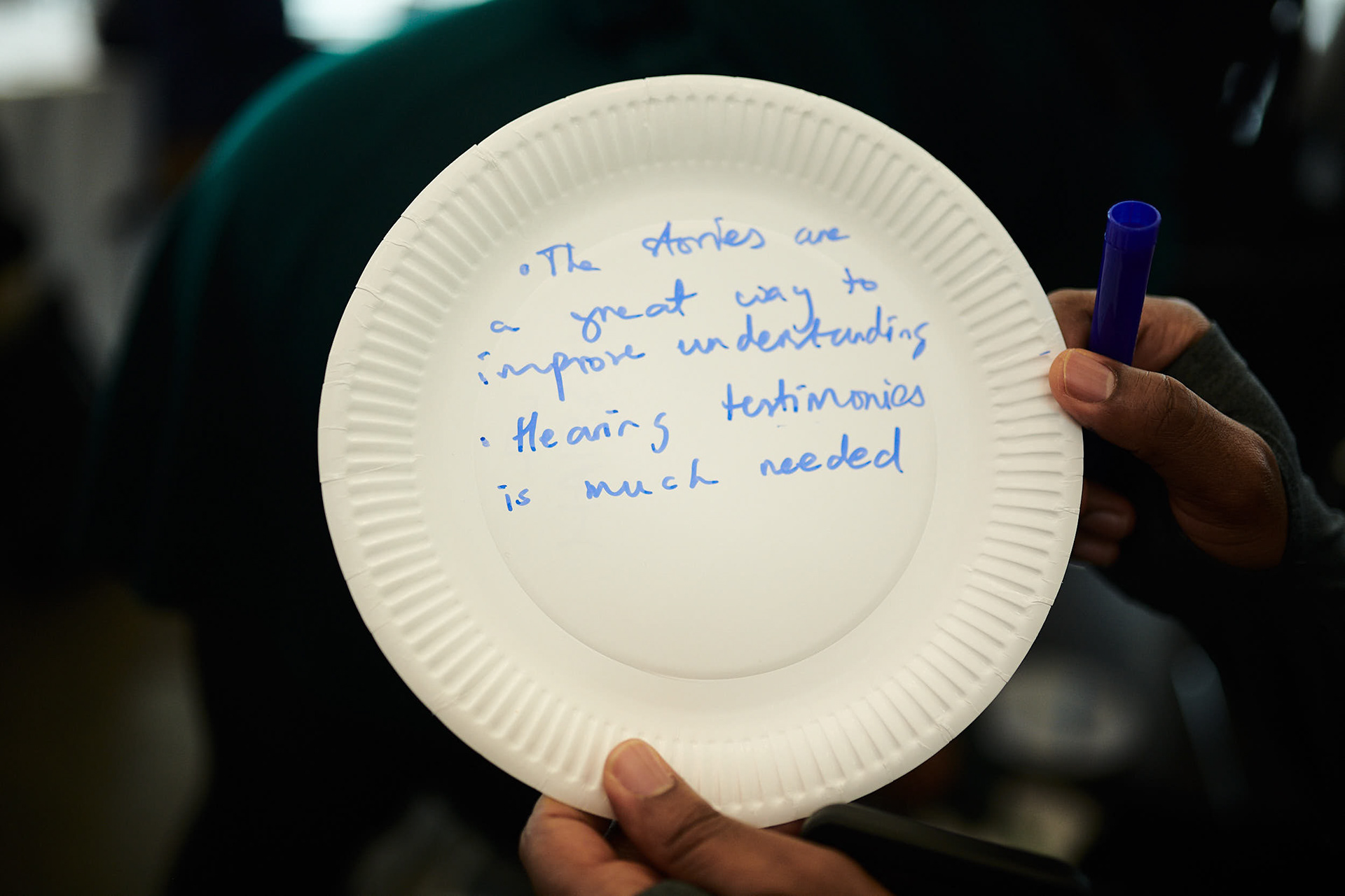 he identity of the original speaker remains anonymous, and this often means that their words can be heard with special attention. Our performances intend to create spaces for reflection and dialogue, not defensiveness or blame."