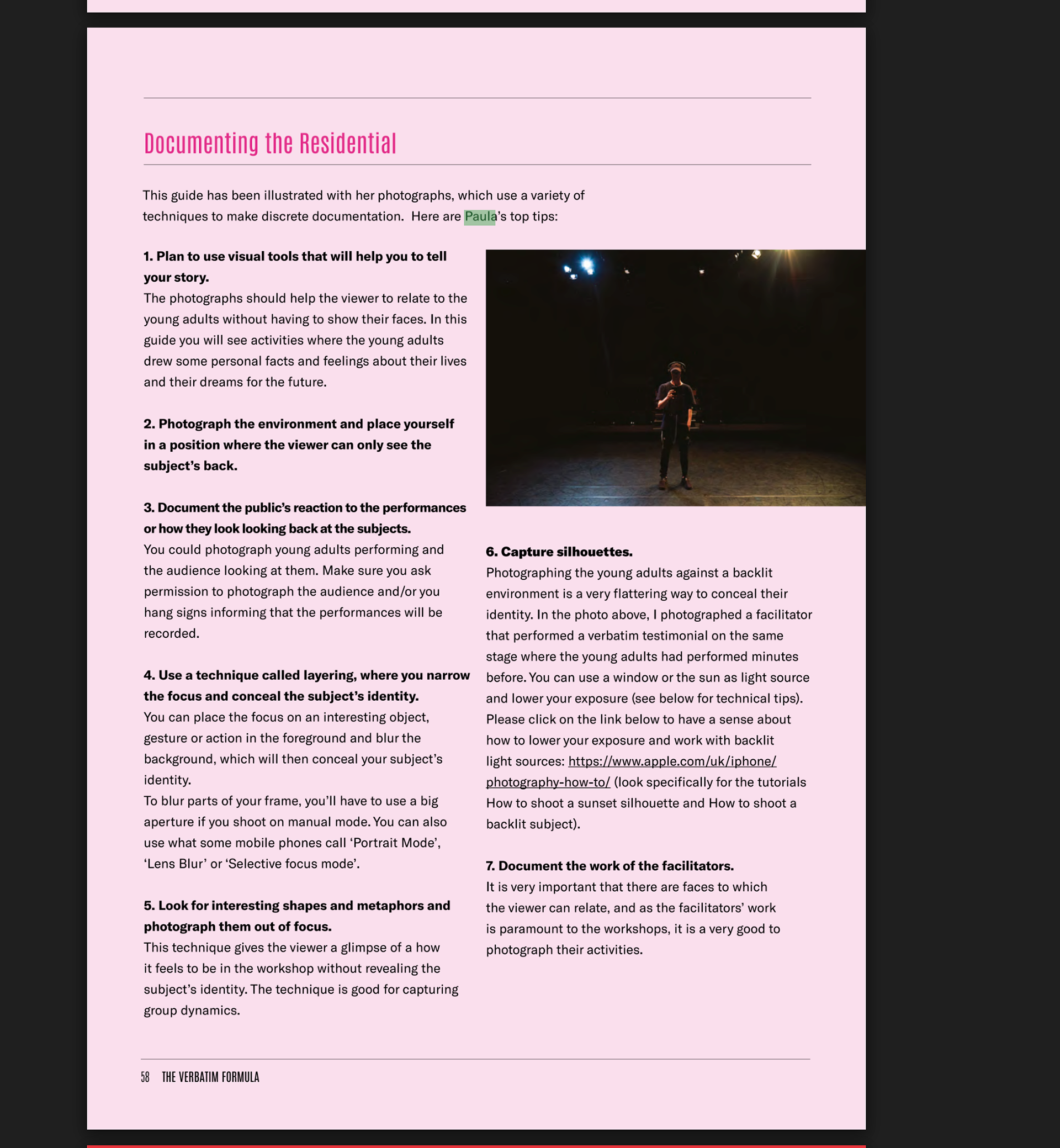 A summary of the techniques taught in the workshop were included on the Making Guides toolkit (see photo), with the aim that the residential organisers could jump-start their photo documenting journey.